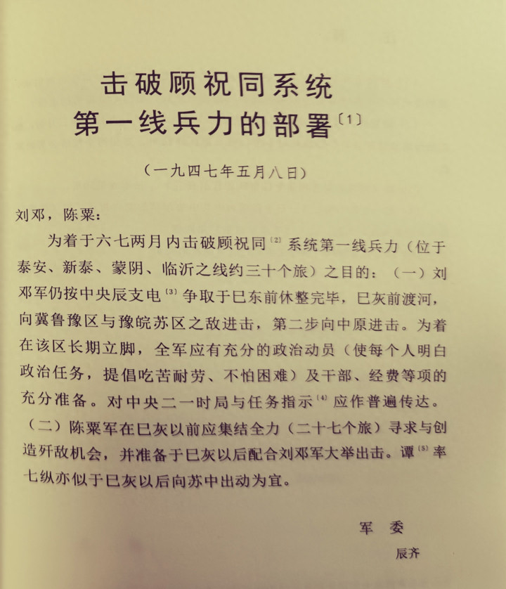 一、中央联想刘邓经略华夏策略,并明确陈粟配合刘邓作战并收受其调换