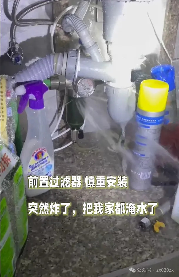 占用空间:前置过滤器大部分家庭只能安装在厨房总水阀位置,导致水槽下方不大的空间占用。最可怕的是厨房都是干厨房,压根没有地漏,一旦前置爆管,不仅自己家被淹,楼下的损失更大。