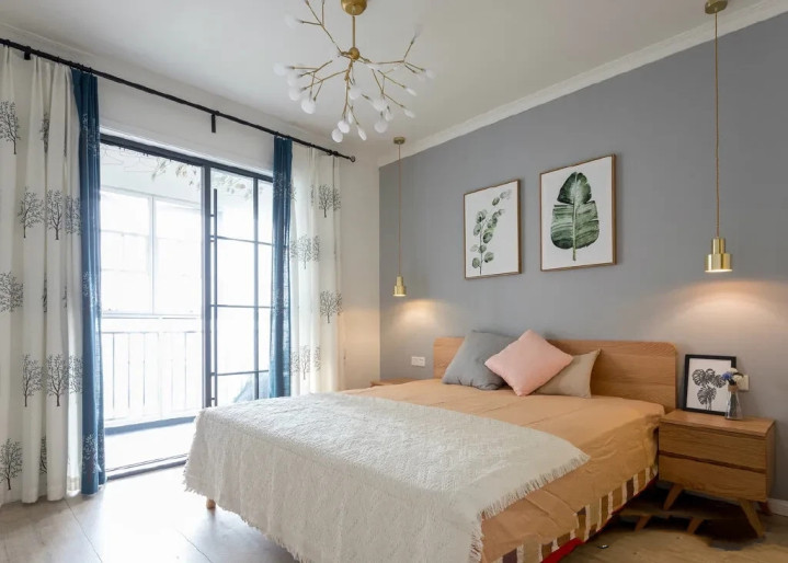 主卧室,带有个阳台,采光超好,而且室内背景墙以灰色为主,却不会给人压抑的感觉,加上了暖灯以及实木的家具搭配组成卧室的主要成分,这样的卧室满满的温馨感,非常让人喜欢和向往。