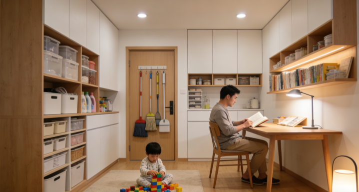 垂直收纳,见缝插针:门后、冰箱侧面、走廊上方,利用免打孔或超薄收纳件,存放高频使用的小物。