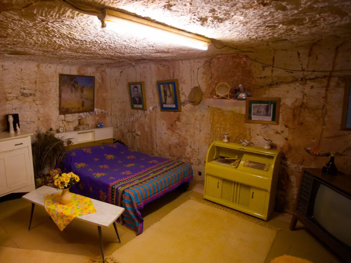 别以为地下住的是阴暗潮湿的洞穴,库伯佩迪的地下住宅,比很多城市公寓还舒适。房子都是在柔软的砂岩里凿出来的,房间宽敞,天花板高达三米,天然砂岩墙壁是温暖的奶油色,自带“温馨滤镜”。室内设施一应俱全:厨房、浴室、电视、网络一样不少,电力、自来水、排水系统和地面普通家庭没区别。通风靠向上延伸的孔洞,既能让热空气排出、新鲜空气进来,还能透进自然光,虽然没有传统窗户,但采光井让室内不压抑。