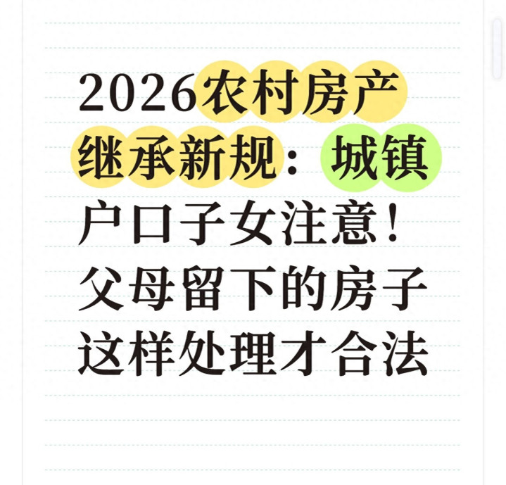 总之,城镇户口子女继承农村父母的房产,2026年的规则很清晰:合法继承、规范使用、按流程办事,就能稳稳守住这份来自“根”的传承。如果家里有农村房产需要继承,建议尽早梳理材料、办理手续,别等政策收紧或出现纠纷才着急。