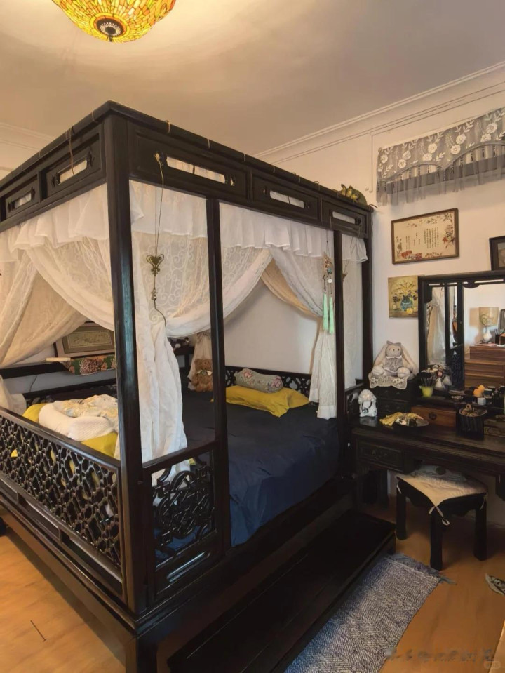 不然你会发现,本身卧室的面积就不是很大,一个中式床放入其中,连活动的空间都没有了。