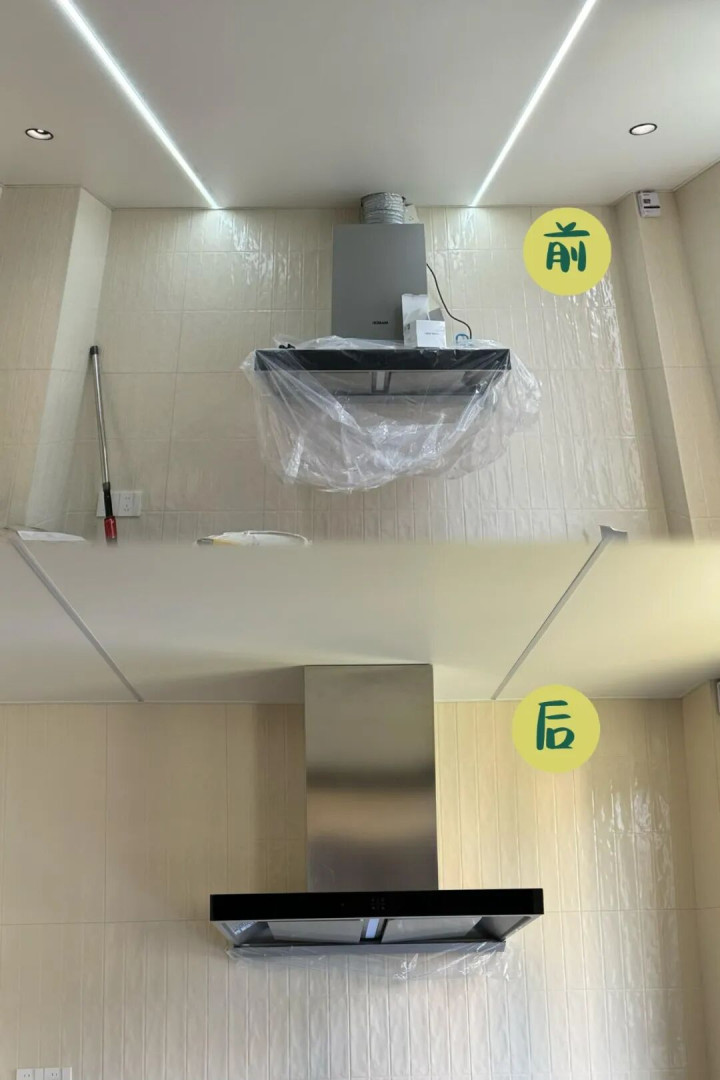 3、油烟机露外面丑,两步解决