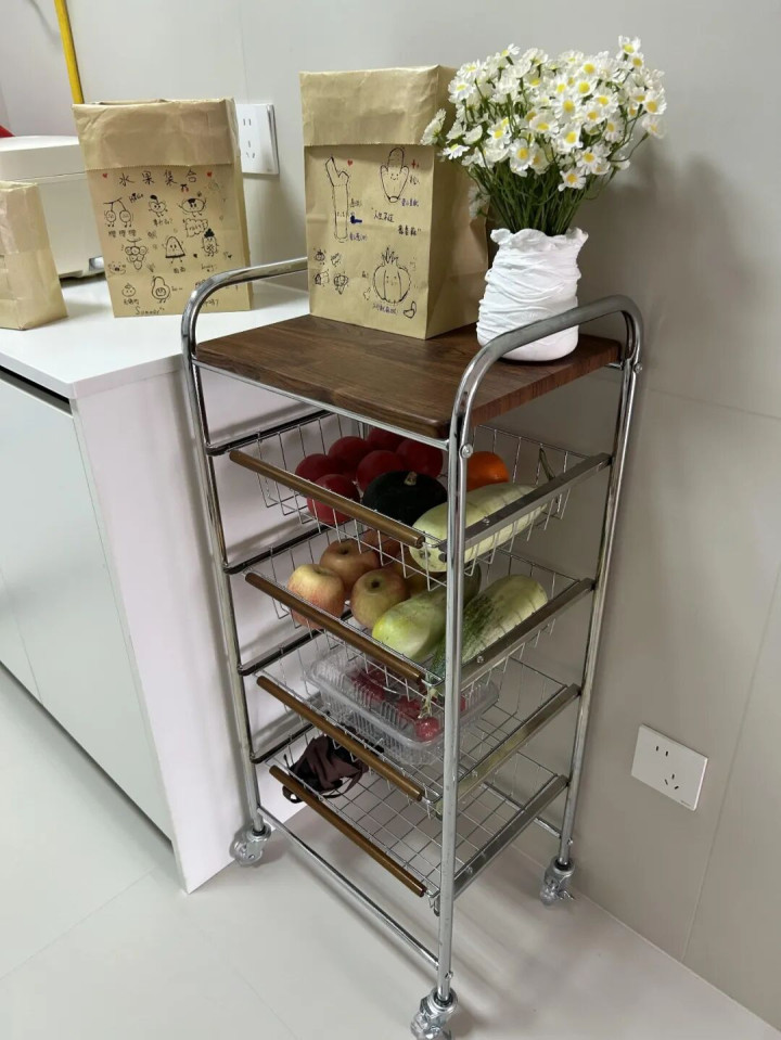 再配一个小推车,不需要放冰箱的蔬菜水果、零食饮料都装小推车上,推到哪儿都是移动仓库。这种东西摆明面上,也更方便拿取。