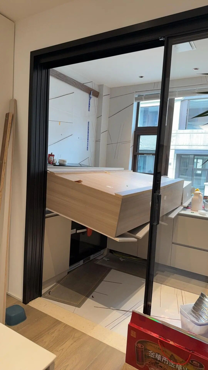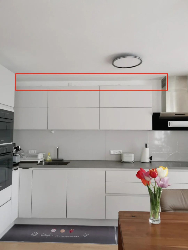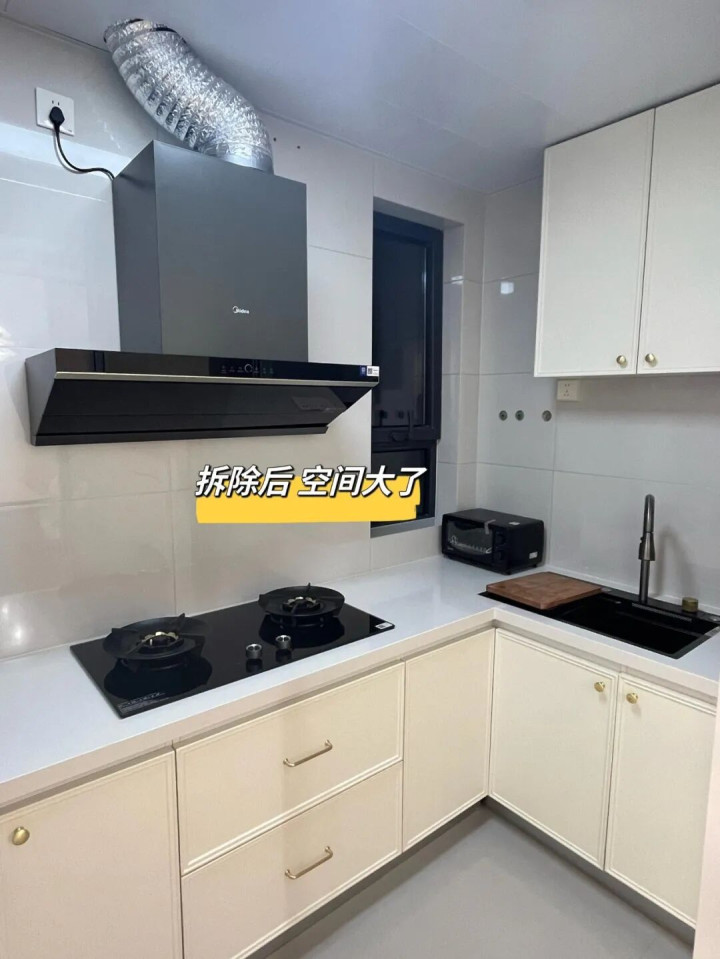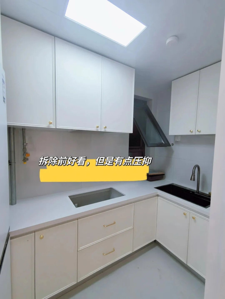 朋友家4平米厨房,吊柜离台面不到80厘米,她老公每次进厨房炒菜都得低头哈腰,最后两口子一咬牙拆了,瞬间变敞亮。