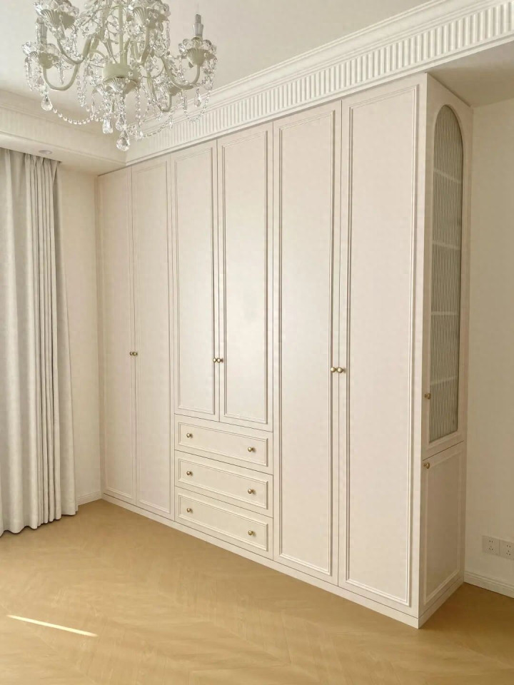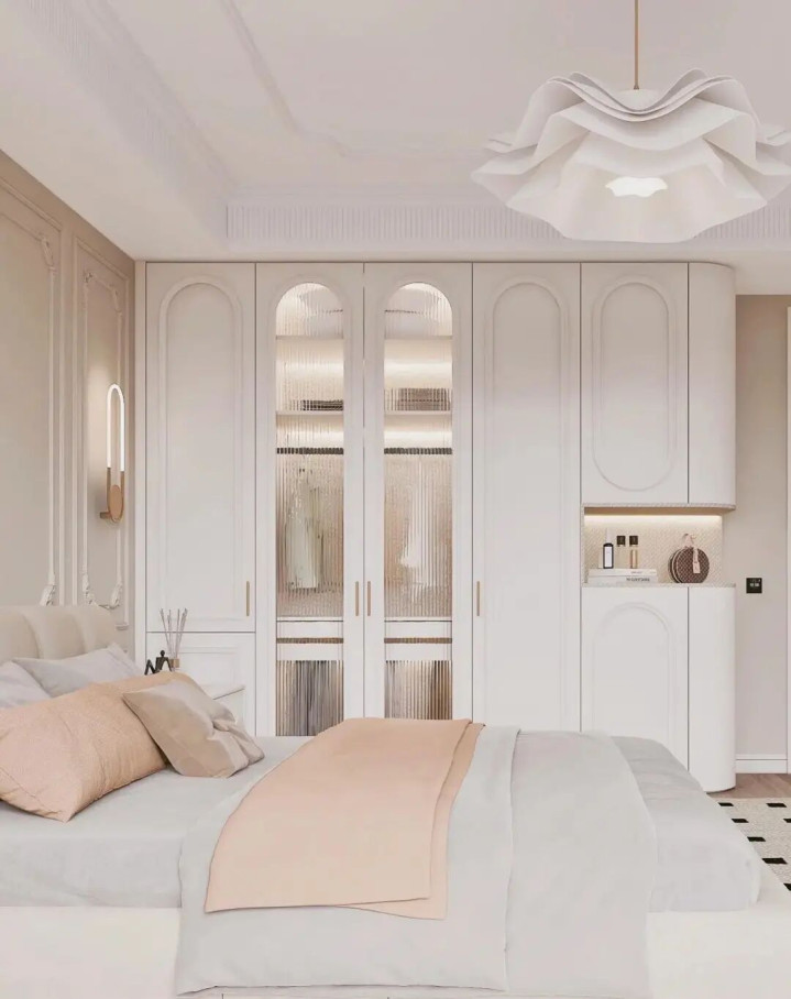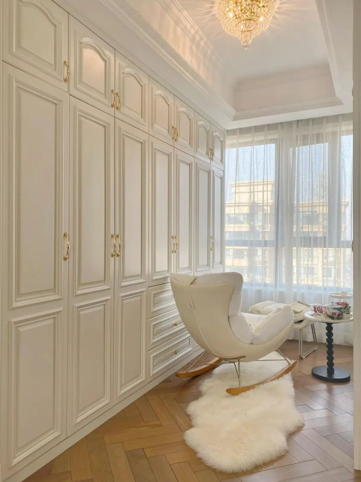 仿佛自带柔光滤镜,让卧室氛围感瞬间拉满。每次看见衣柜门,心情都会超好吧!就像像住在城堡里的公主