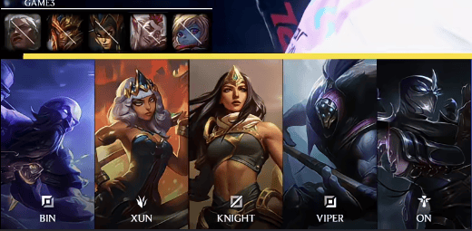 BLG选用:Bin贾克斯;Xun奇亚娜;Knight瑞兹;Viper希维尔;ON慎