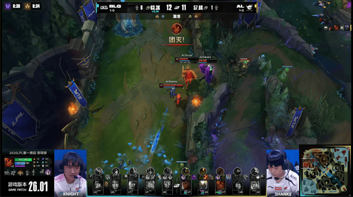虎扑01月17日讯GAME3:BLG蓝色方;AL红色方