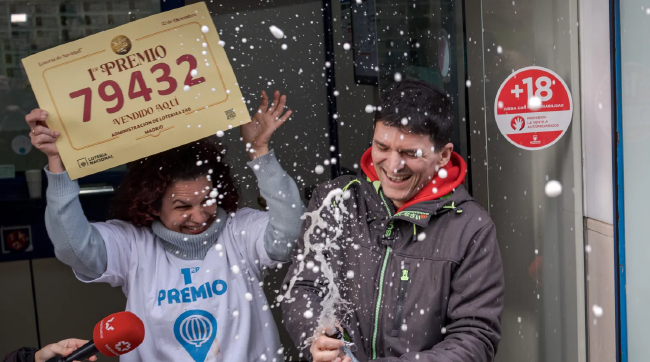 2025年12月22日,西班牙大胖子彩票开奖,全国大部分地区观众都在电视机前观看开奖仪式。当地时间10点44分,两名马德里的小学生喊出了中奖号码,头奖号码为:79432。此号码在拉巴涅萨镇售出117套彩票,单票奖金40万欧元,总金额4.68亿元!