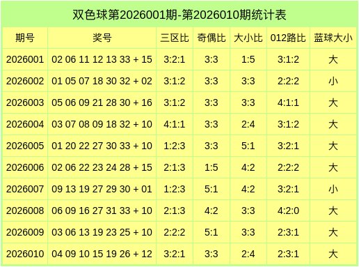 奇偶分析:上期红球奇偶比开出3:3,奇偶红球开出个数相等,最近10期奇偶红球总比例为33:27,奇偶红球奇数号码表现较热,本期看好奇数概率较小,预计奇偶比为2:4。