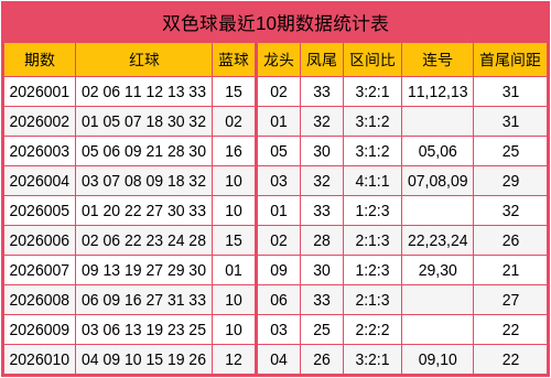 夏师傅第2026011期双色球数据统计表