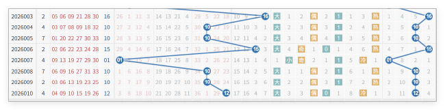 根据最近3期重号连续开出的数量来看,仅有开出2枚重号,可见重号形态虽走势火热,但在数量上不宜高估。同时,考虑到上次红球连续3期开出重号码还要追溯到去年的10月26日,因此红球重号19可以考虑杀号。