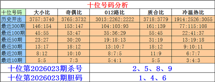 排列三百位第2026023期杀号:4、5、6、9