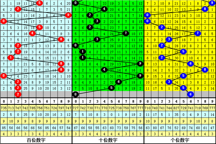 号码012路分析:在历年第023期开奖中,号码012路总比例为25:26:15,其中0路号码断档6期,1路号码断档4期,2路号码断档10期,本期012路比参考2:0:1。