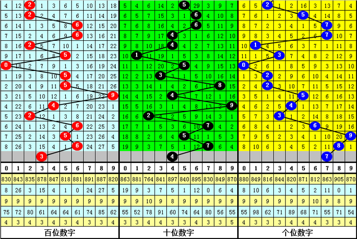 4、组选号码012路比为43:33:62,其中0路号码轮空12期,1路号码轮空14期,2路号码轮空11期,本期012路比参考1:2:0组合。