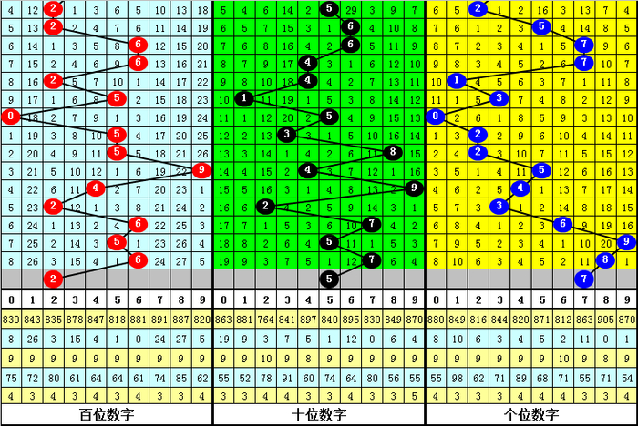 第二位冷码判断:上期奖号为7,遗漏值为1期,目前该位最冷号码为0,遗漏值为19期,本期注意冷码0出现。