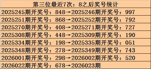第三位冷码判断:上期开出奖号8,遗漏值为20期,目前该位最冷号码为7,遗漏值为11期,本期预计7解冻。